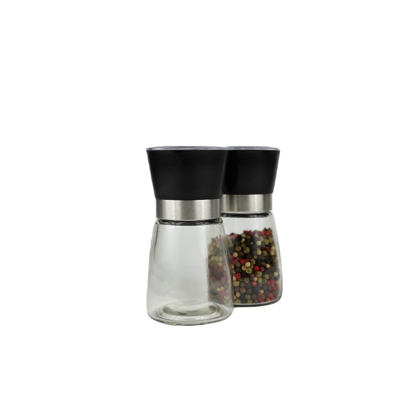 Macinino in vetro con tappo removibile e ingranaggio in ceramica. Regolazione della macina. Adatto per macinare sale, pepe e spezie. Facile e comodo da usare. Altezza 14 cm