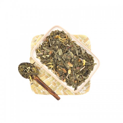 Tè verde Sencha, limone scorze, menta dolce, menta piperita, lemongrass, petali di calendula, oli essenziali.