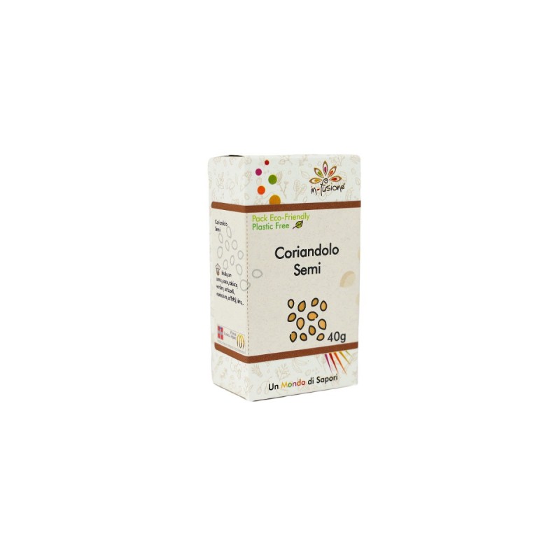 Il coriandolo è una pianta erbacea annuale, originaria del bacino mediterraneo, conosciuta da millenni e molto apprezzata dai cuochi di tutto il mondo, che ne usano ogni sua parte. I piccoli semi essiccati, dall'aroma fresco e dolce, simile a quello dell'arancio, vengono ampliamente utilizzati in modo versatile in tantissime preparazioni, senza che rovinino il gusto dei piatti. É una spezia fondamentale nella cucina araba, medio-orientale, sud-europea e asiatica, ma utilizzata praticamente a livello mondiale. Grazie al suo aroma delicato e dalle note agrumate, viene largamente impiegato dai mastri birrai per insaporire le birre bianche o bionde. Ingrediente protagonista di moltissime miscele di spezie esotiche, come i curry indiani o thai. Si trova in semi e macinato. In cucina: aromatizza stufati di carne, legumi e verdure saltate. Molto usato per i sottaceti, le marinature e le salsicce. Ideale per ricette vegetariane e vegane, o per salse a base di yogurt. In India viene usato per esaltare i soffritti e come base della tradizionale miscela Garam Masala che condisce i piatti del Nord.
