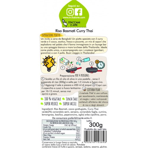 Riso Basmati Curry Thai...Un invito a cena da Bangkok! Un piatto speziato con il Curry verde e il cocco, esotico, fresco e piccante, un mix di sapori che esplodono nel palato che ti fanno immaginare in un lounge bar su una spiaggia bianca e mare turchese della Thailandia.